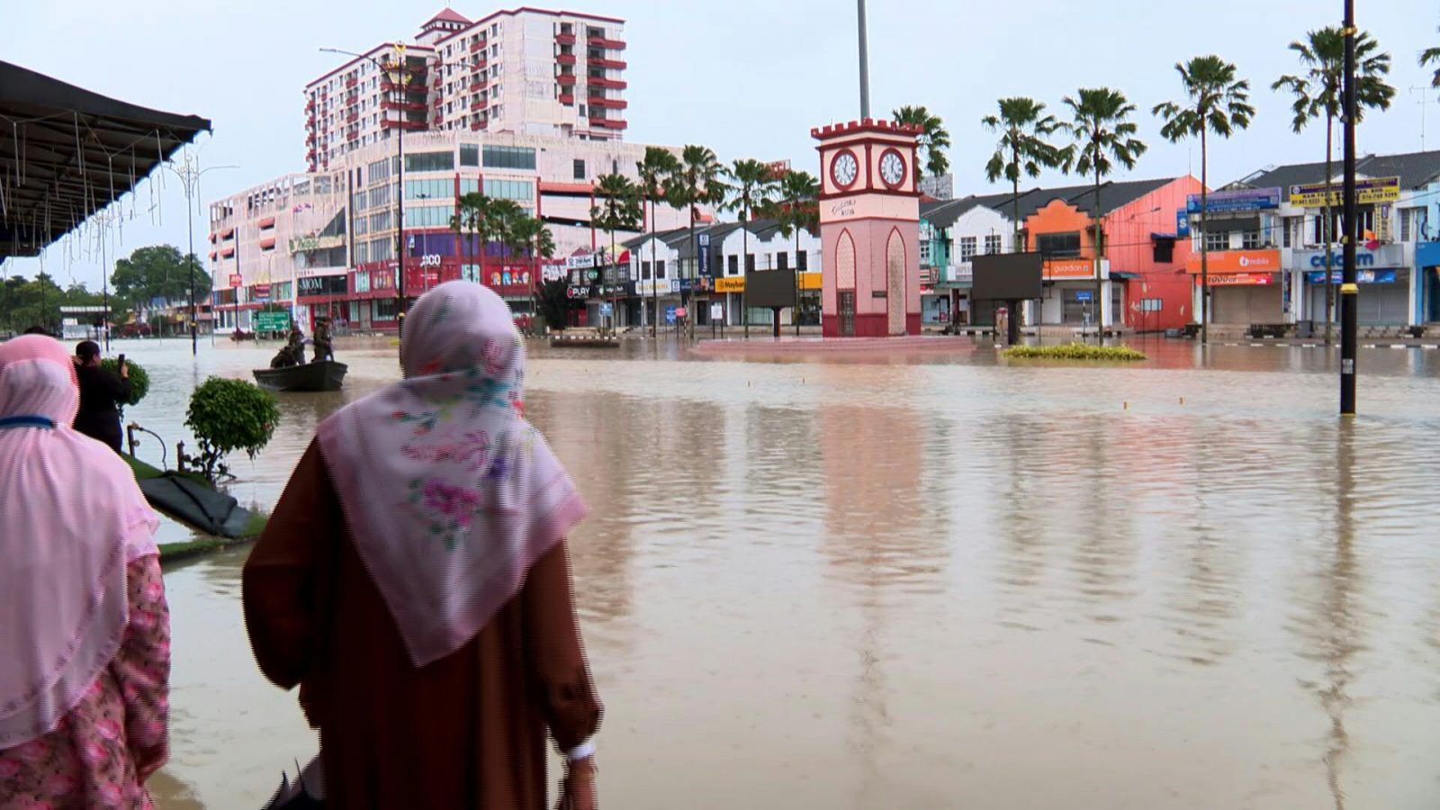 In the Johor town of Yong Peng, AFP journalists saw a family wading in brownish, above knee-deep waters outside their home, with their children using interior tire tubes as floats.