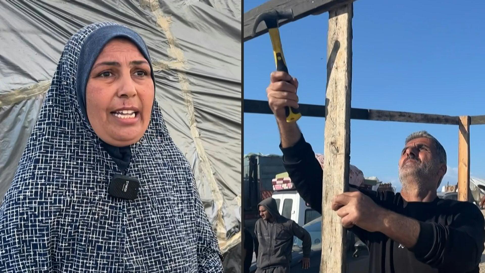 Maryam Al-Adham expressed her family’s difficulty in finding adequate shelter in Rafah due to overcrowded shelters and the high cost of tents, which led them to live in the back of a truck.