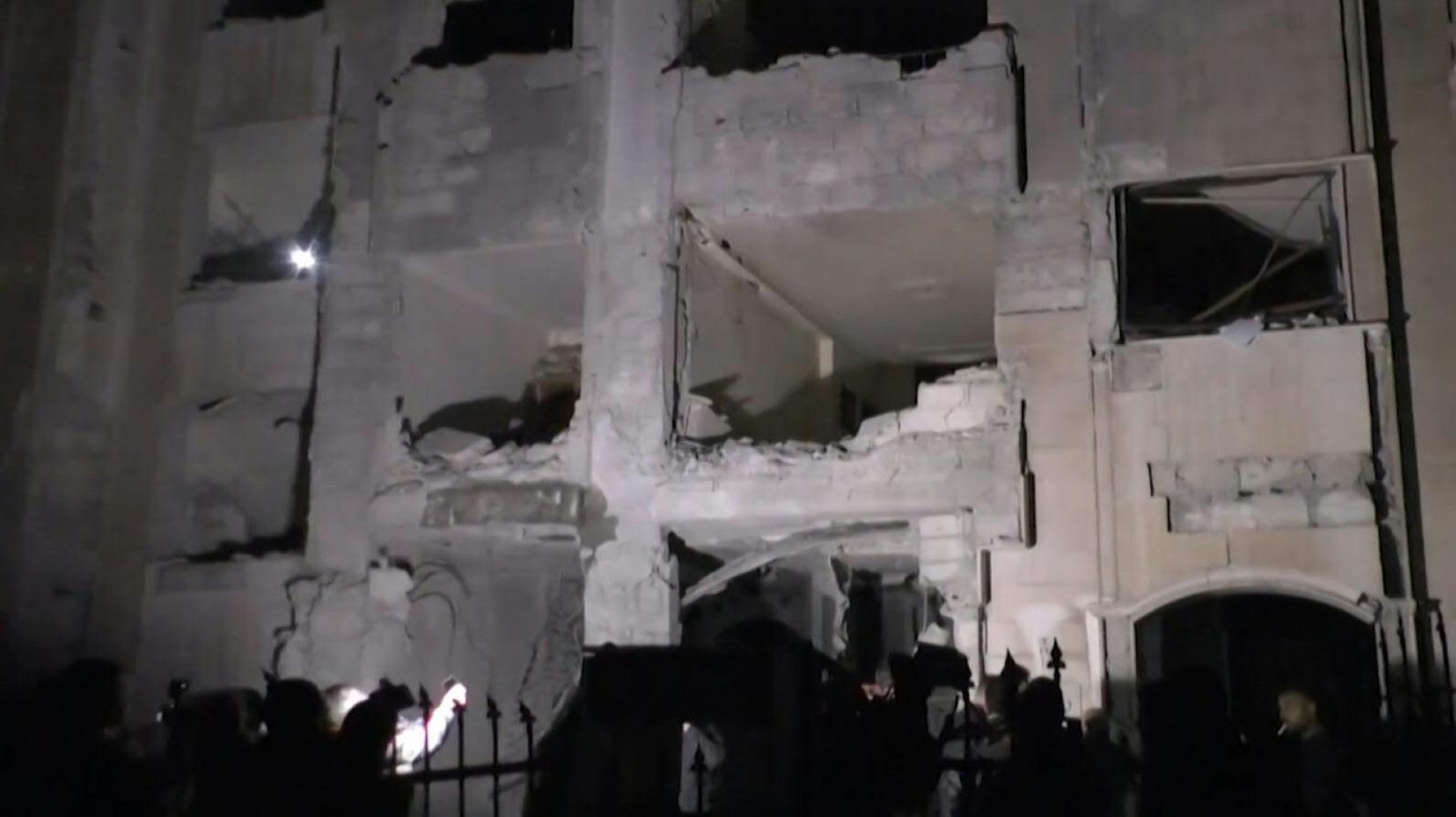 Footage posted by state media showed that a 10-storey building was badly damaged in the attack, crushing the structure of its lower floors.