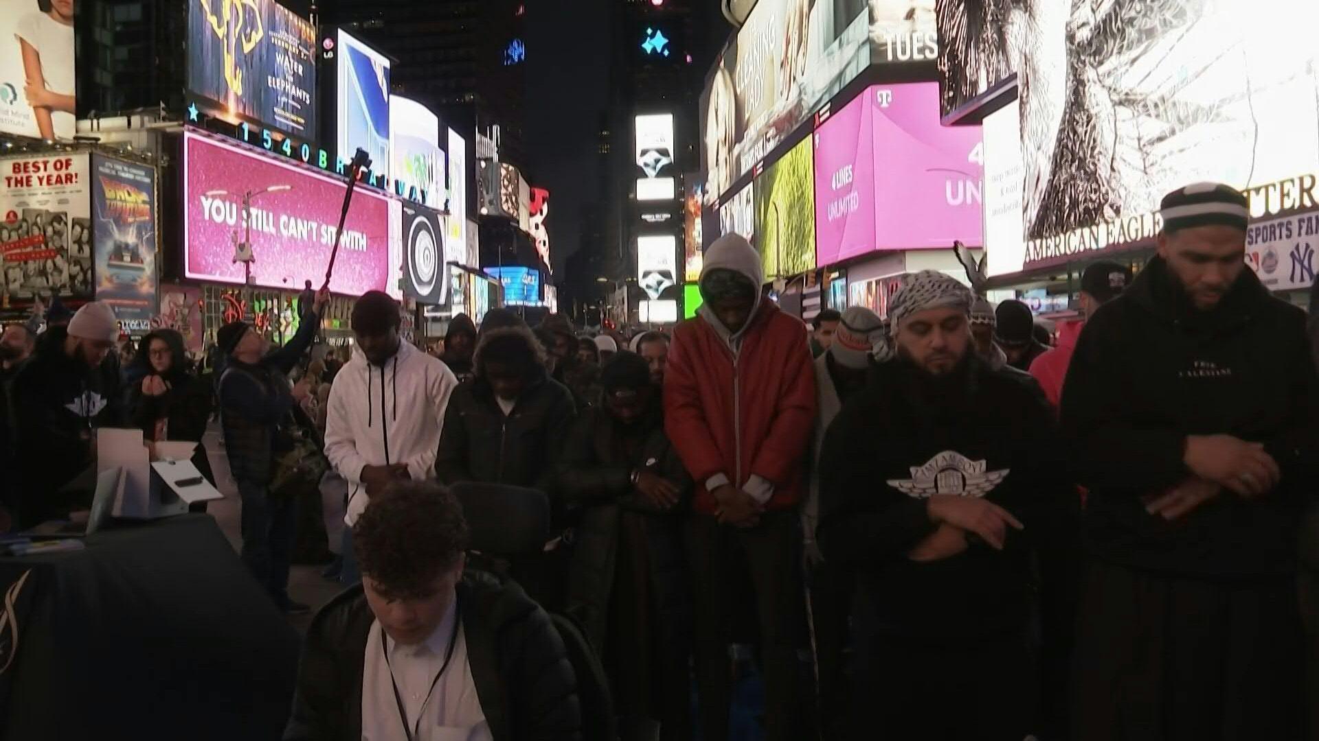 Muslims gather to pray in NY’s Times Square as Ramadan begins