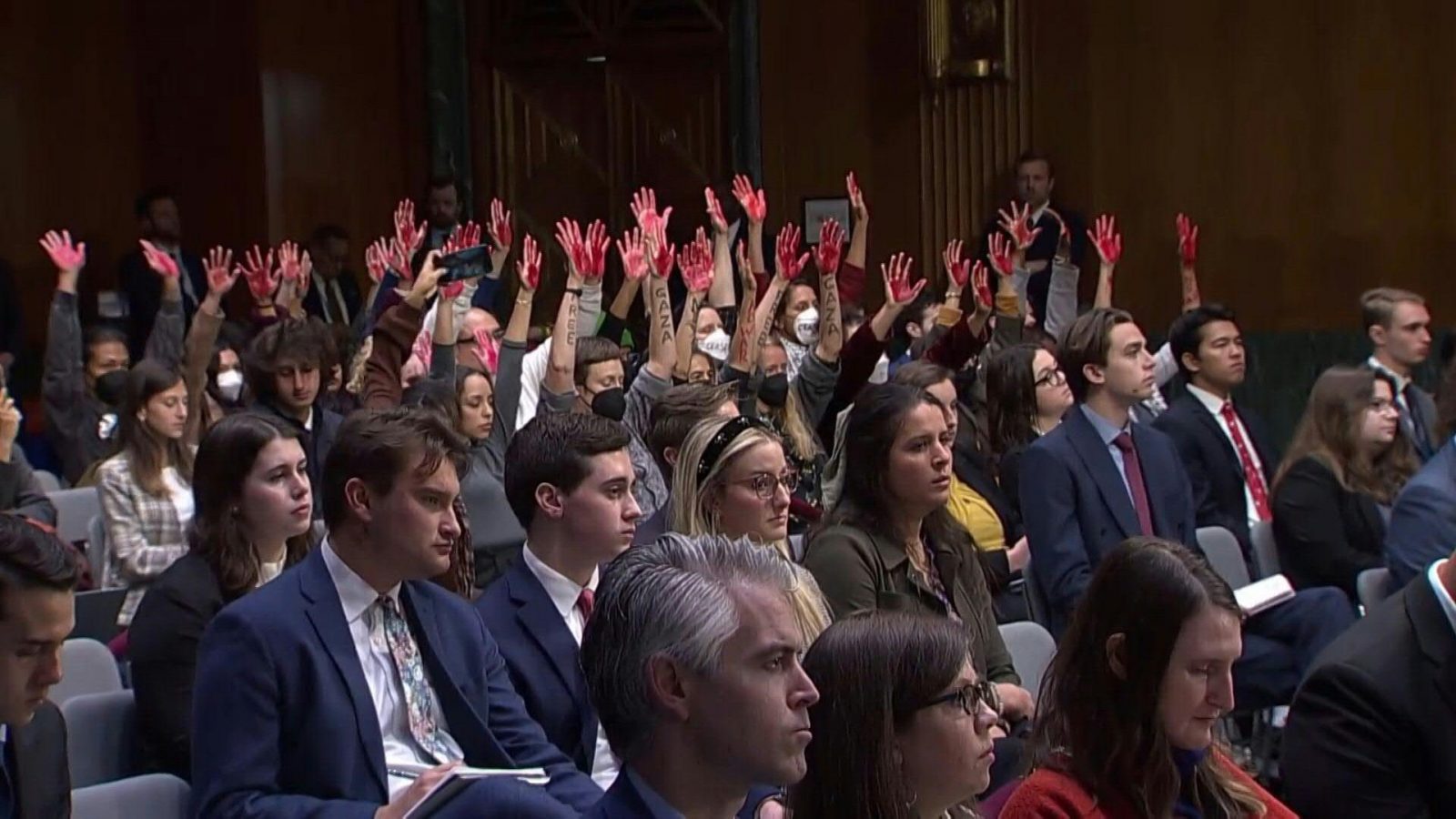 “We charge you with genocide. Mayor Bibb, you can’t hide,” the protesters chanted in the council chambers, according to video of the Monday night meeting that has circulated on social media. “Free, free Palestine.”